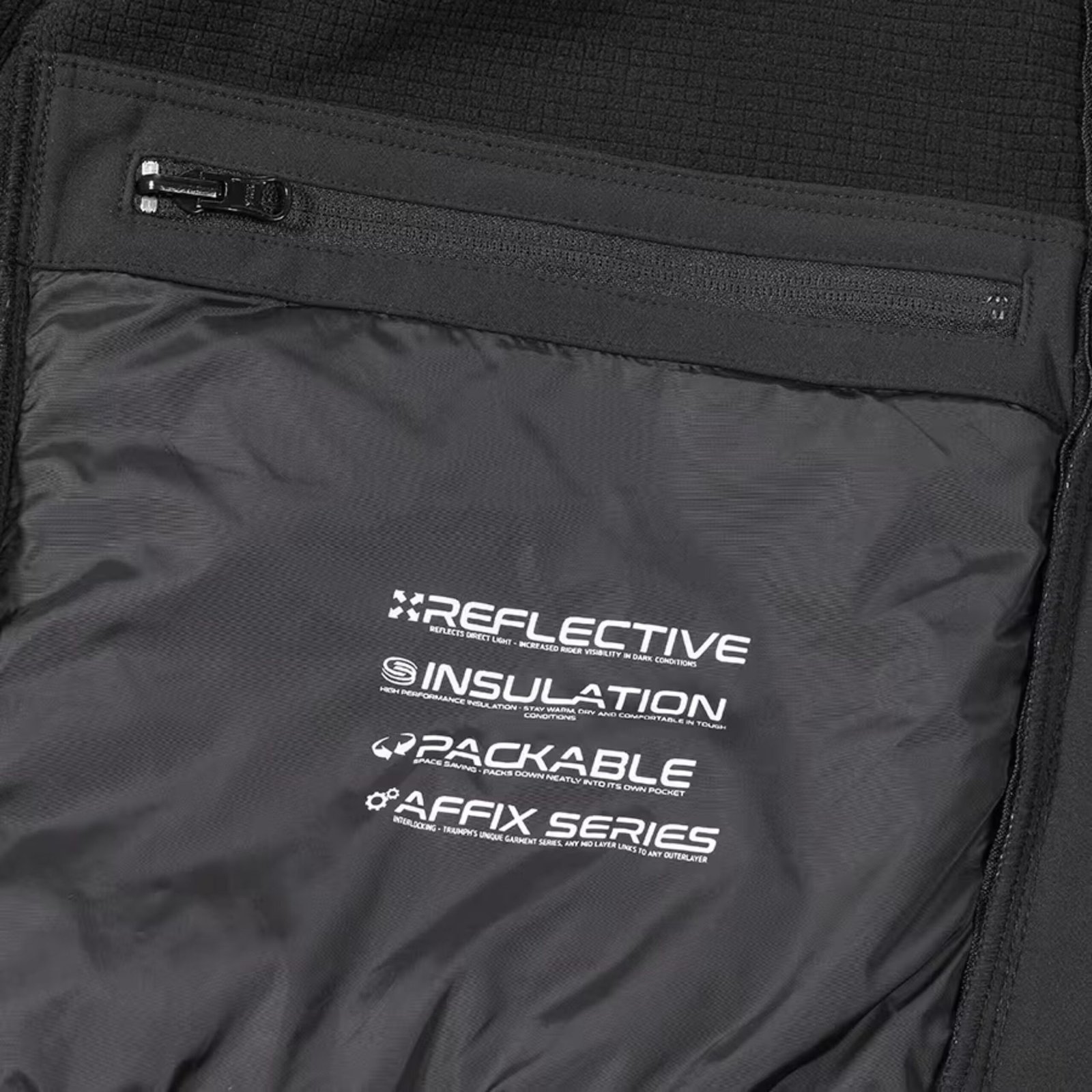 The Mid-Layer Soft Shell Jacket is a versatile and functional addition to your riding wardrobe, designed to deliver warmth, comfort, and adaptability in a lightweight form. As part of Triumph’s innovative Affix Series, this jacket has been carefully engineered to work seamlessly under any of the adventure touring outer jackets, making it the perfect companion for long rides, changing conditions, or everyday wear.