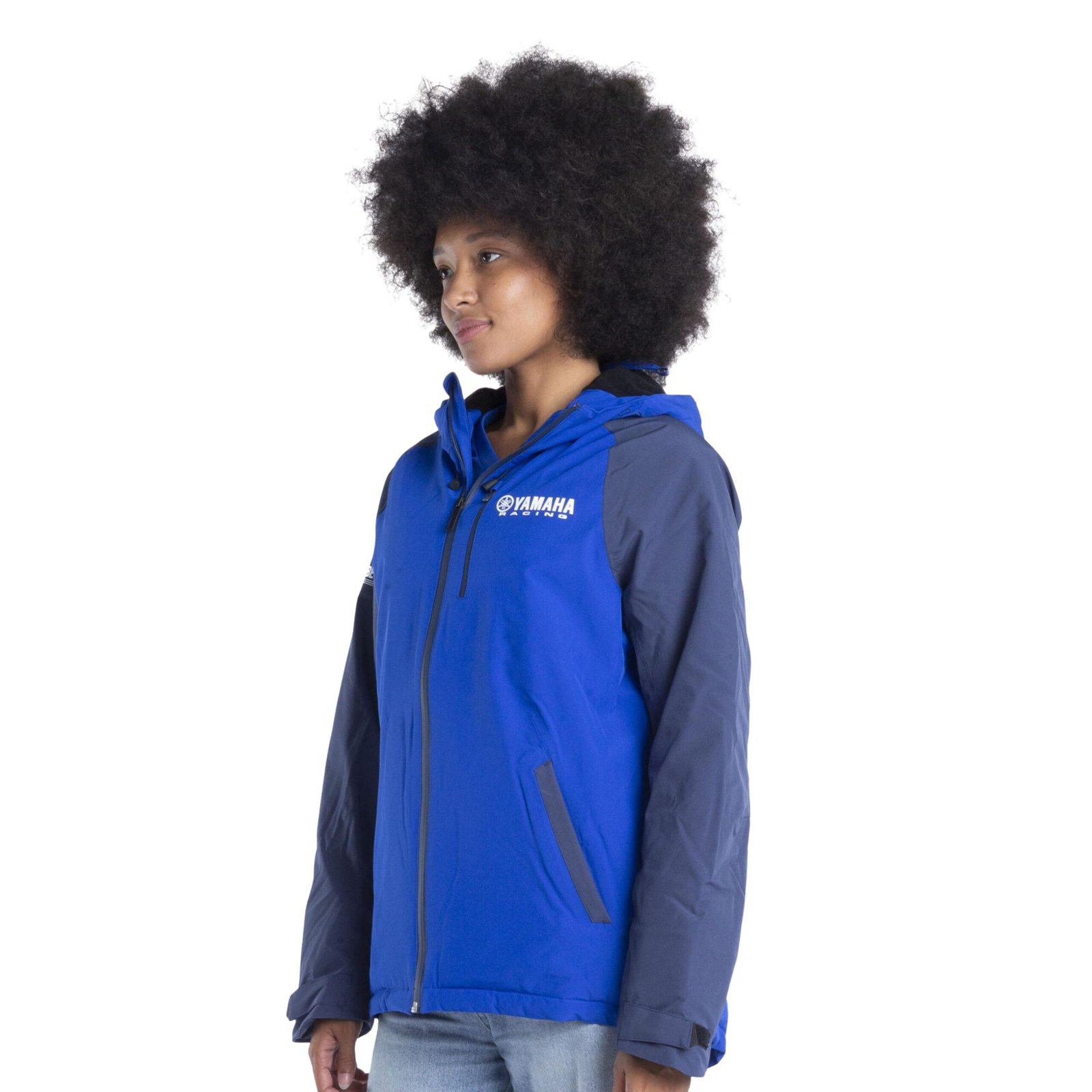 A flattering women-specific fit enhances mobility while maintaining a sleek silhouette. Adjustable cuffs and hem allow for a customized fit, while the full front zip and high collar offer additional defense against the elements. Signature Yamaha branding and the distinctive Paddock Blue color scheme add a bold, sporty touch that reflects the brand’s racing heritage.